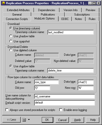 | Use shadow table | Allows you to determine if a row has been created or modified since last download. When using shadow table, triggers need to be used to maintain the shadow table | |