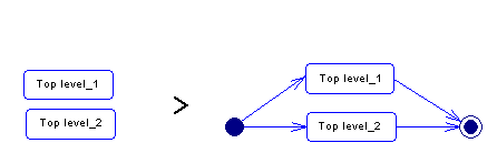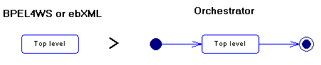 When generating for example from BPEL4WS or ebXML to Orchestrator, each top-level process must be converted into a simple graph containing a start, a process and an end: