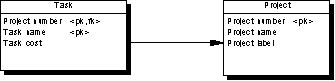 The CDM below shows a dependent relationship. Each task must have a project number.