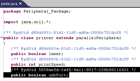- In the class diagram, right-click the printer symbol, and select Edit Source Code.