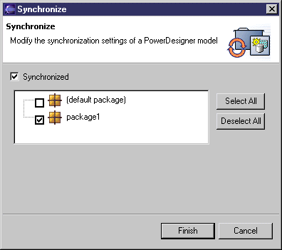 The check box of the package already synchronized with the first model is greyed. You cannot select it to synchronize the second model.