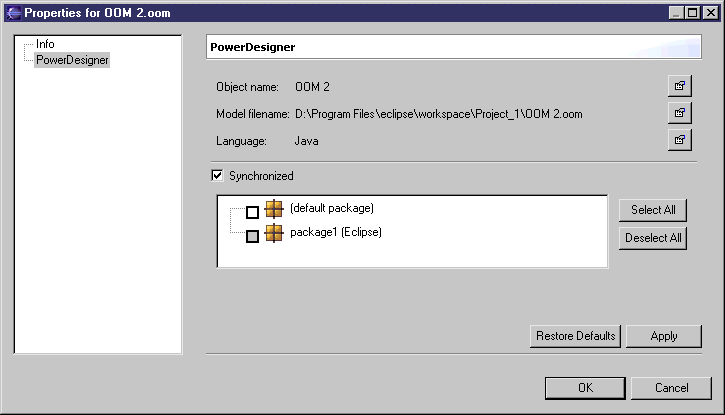 In the Model Explorer, create a first OOM targeted with Java. In this first model, create a package and synchronize it.