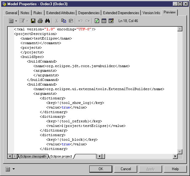 - Click the Eclipse.project tab to preview the Eclipse .project file.