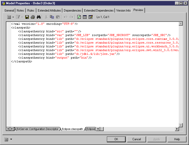 - Click the Eclipse.classpath tab to preview the Eclipse .classpath file.