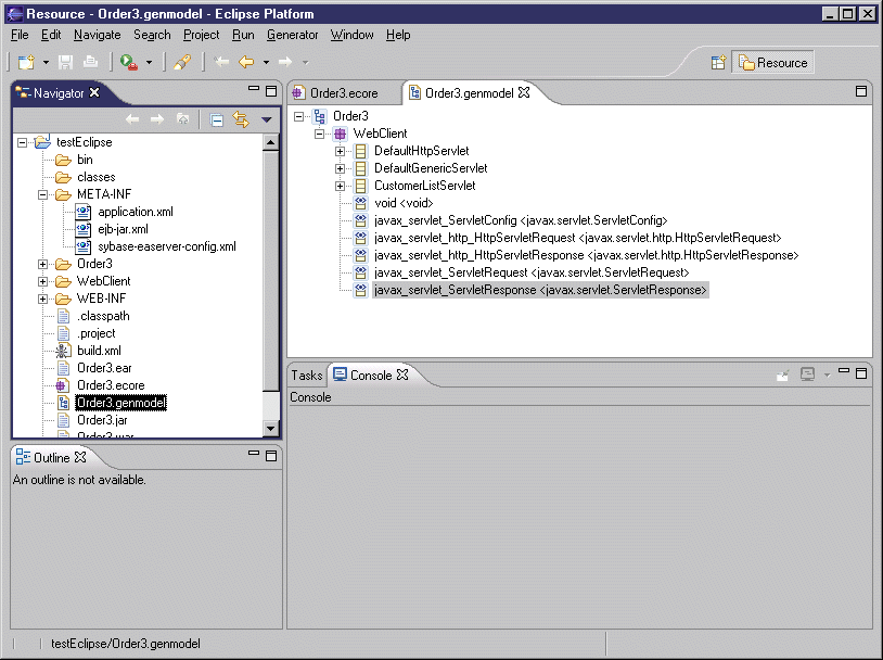 The EMF code generator will create three projects: the model project, the edit project and the editor project and will compile them.