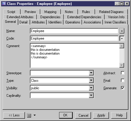 If you add a tag, the documentation is preceded by /// in the generated code. During reverse engineering, the / signs used to identify documentation are removed and the start and end documentation tags are automatically added.