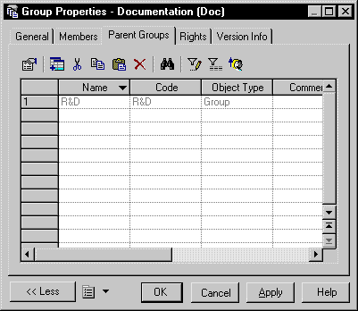 For example, in a development team you have created several groups corresponding to the different teams: Designers, Quality Assurance, Documentation. You can insert these groups into a larger group called R&D to which you can define special rights.