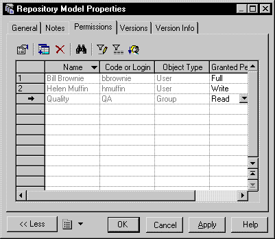 - For each user or group, select the access permission from the drop down list box in the Access column.