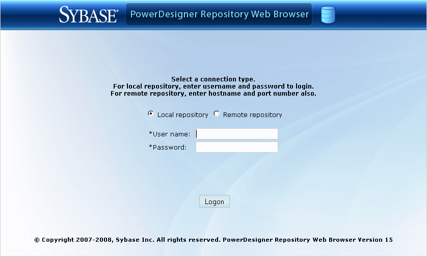- Click Logon to go to the Repository Web Browser home page.