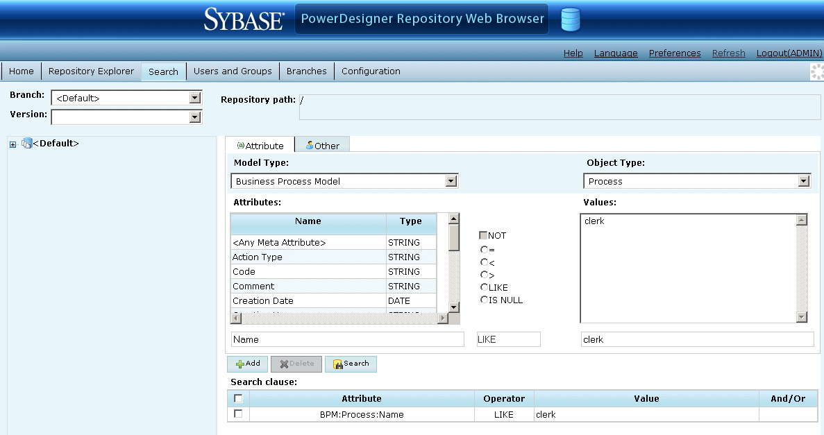 - [optional] Create additional search clauses and add them to the Condition table, choosing one of the following conjunctions: