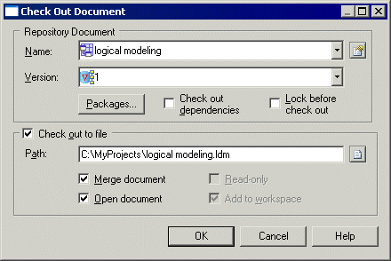 The Check Out Document window lets you specify the model or file to be checked out and set check out parameters.