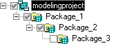 Selection check boxes in package modelingproject, 1, and 2 are grayed |