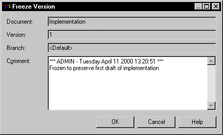- Right-click a document node in the repository browser and select Freeze to open the Freeze Version dialog box:
