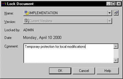 - Right-click a document node in the repository browser and select Lock to open the Lock Document dialog box.