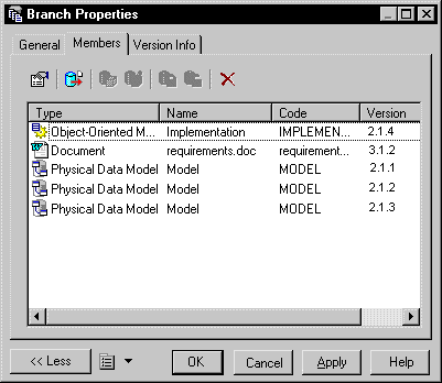 You can add versions to a branch by checking them in. Each document version is displayed as a member of the branch on the Members tab of its property sheet. If you check the same document in several times in a branch, each version becomes a member of the branch.