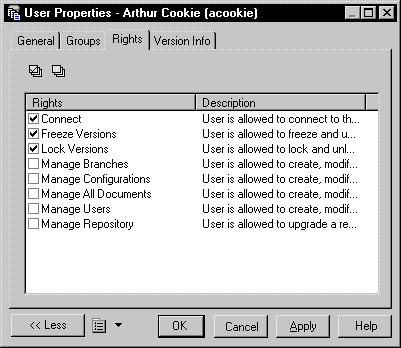 A repository administrator is responsible for granting the rights to the repository users and groups. The same types of rights can be assigned to groups and users.